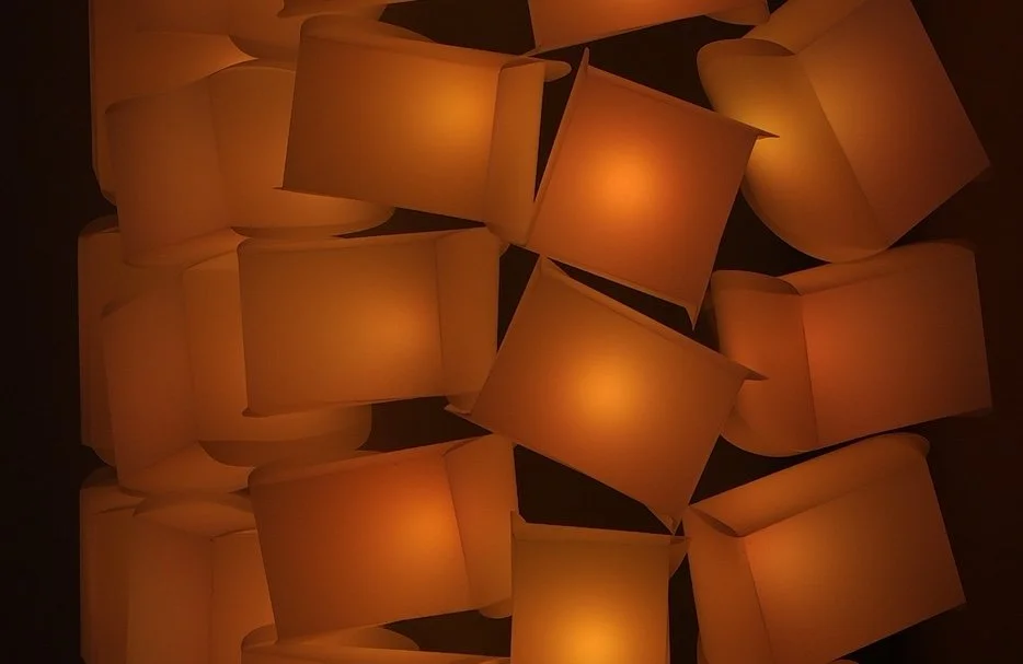 A unique blend of shapes, shadows, light, and color. Forms and folds create a soothing glow and organic vibe.